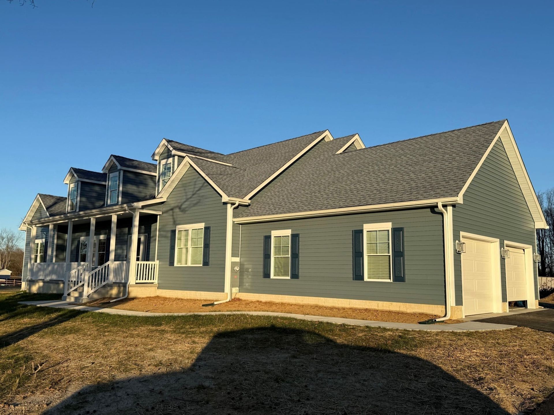 Blue home exterior with garage | Exteriors | Bay to Beach Builders | Greenwood, DE 19950