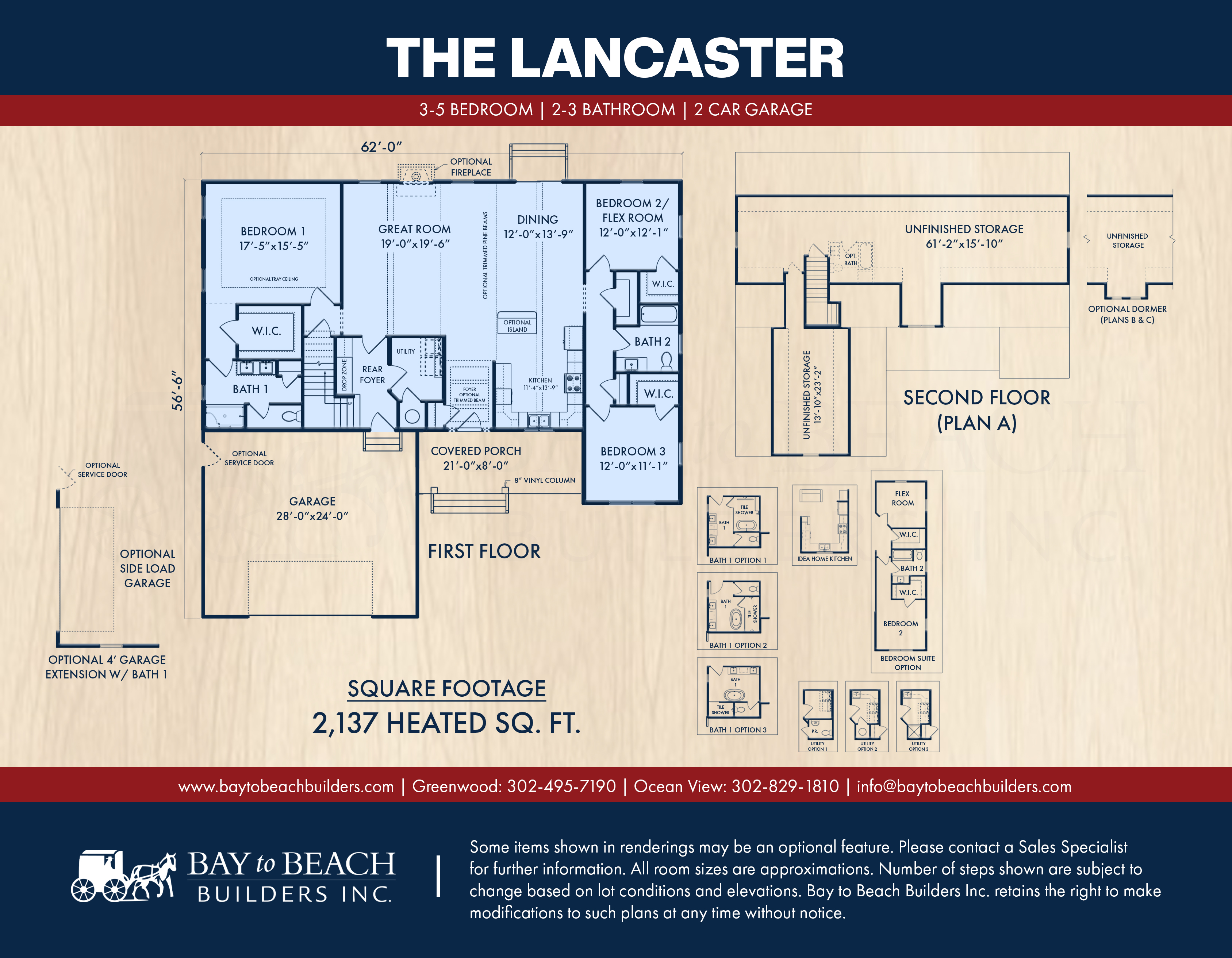 The Lancaster also includes a spacious two-car garage, with options for a front-load or extended garage to accommodate additional storage or a workshop area. Optional upgrades, such as dormers and covered porch enhancements, allow homeowners to personalize the exterior to their liking.