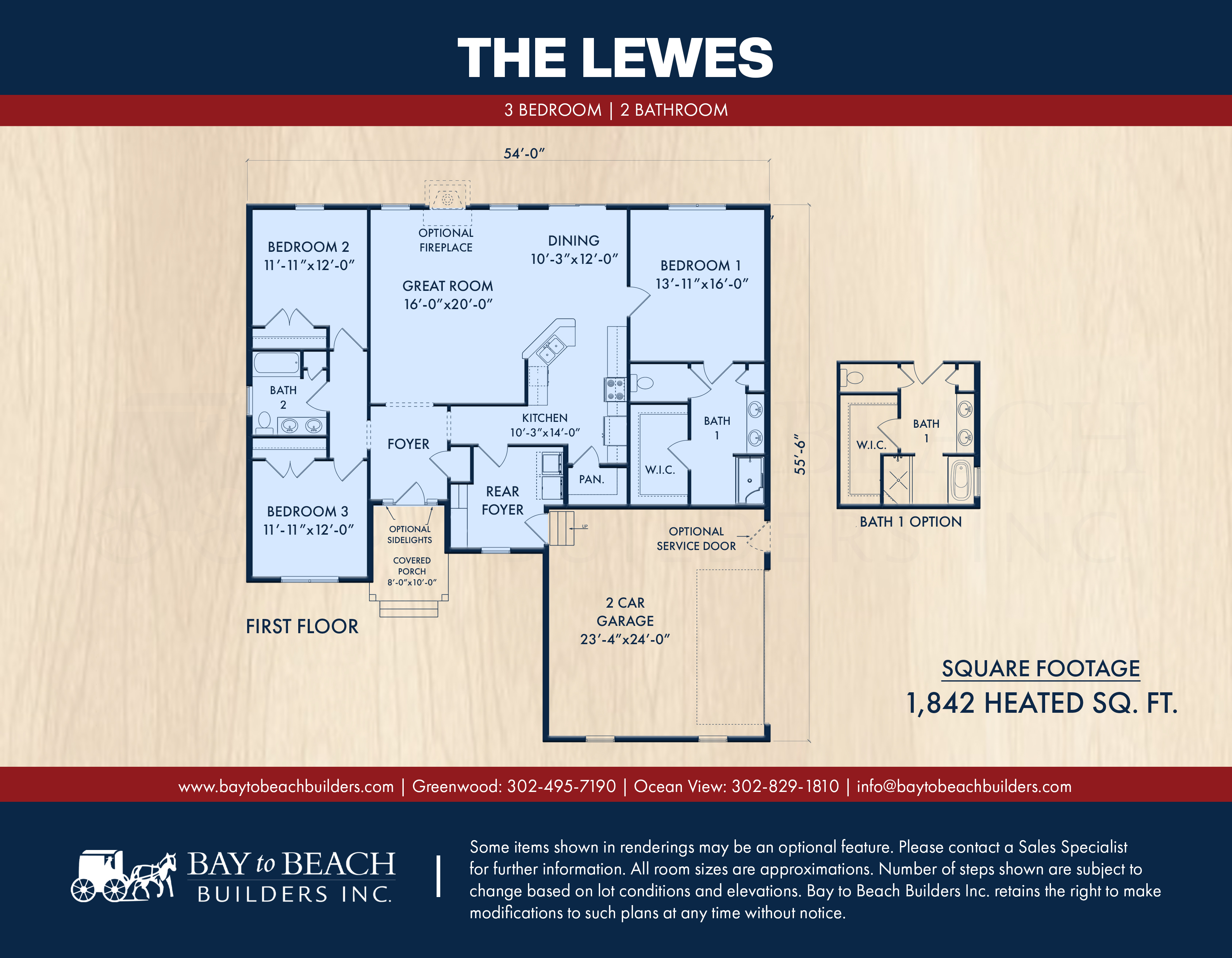 Smartly designed and beautifully efficient, the Lewes by Bay to Beach Builders is a single-story home that offers 1,842 heated square feet of well-organized living space. Featuring 3 bedrooms, 2 full baths, and a 2-car garage, this plan is ideal for retirees, small families, or anyone looking for low-maintenance living with timeless curb appeal.