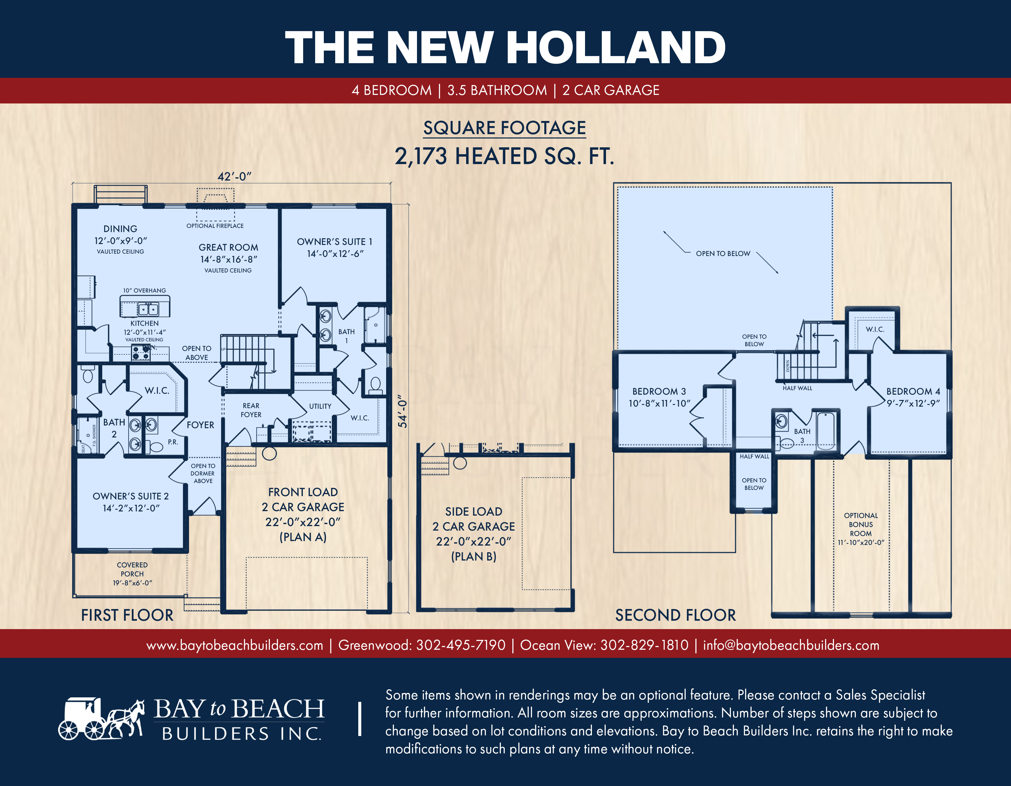 Blending traditional charm with modern convenience, the New Holland is one of the most versatile home plans offered by Bay to Beach Builders. With 2,173 heated square feet, 4 bedrooms, 3.5 bathrooms, and a 2-car garage, this layout is designed to meet the needs of growing families, multi-generational households, or homeowners looking for long-term flexibility.