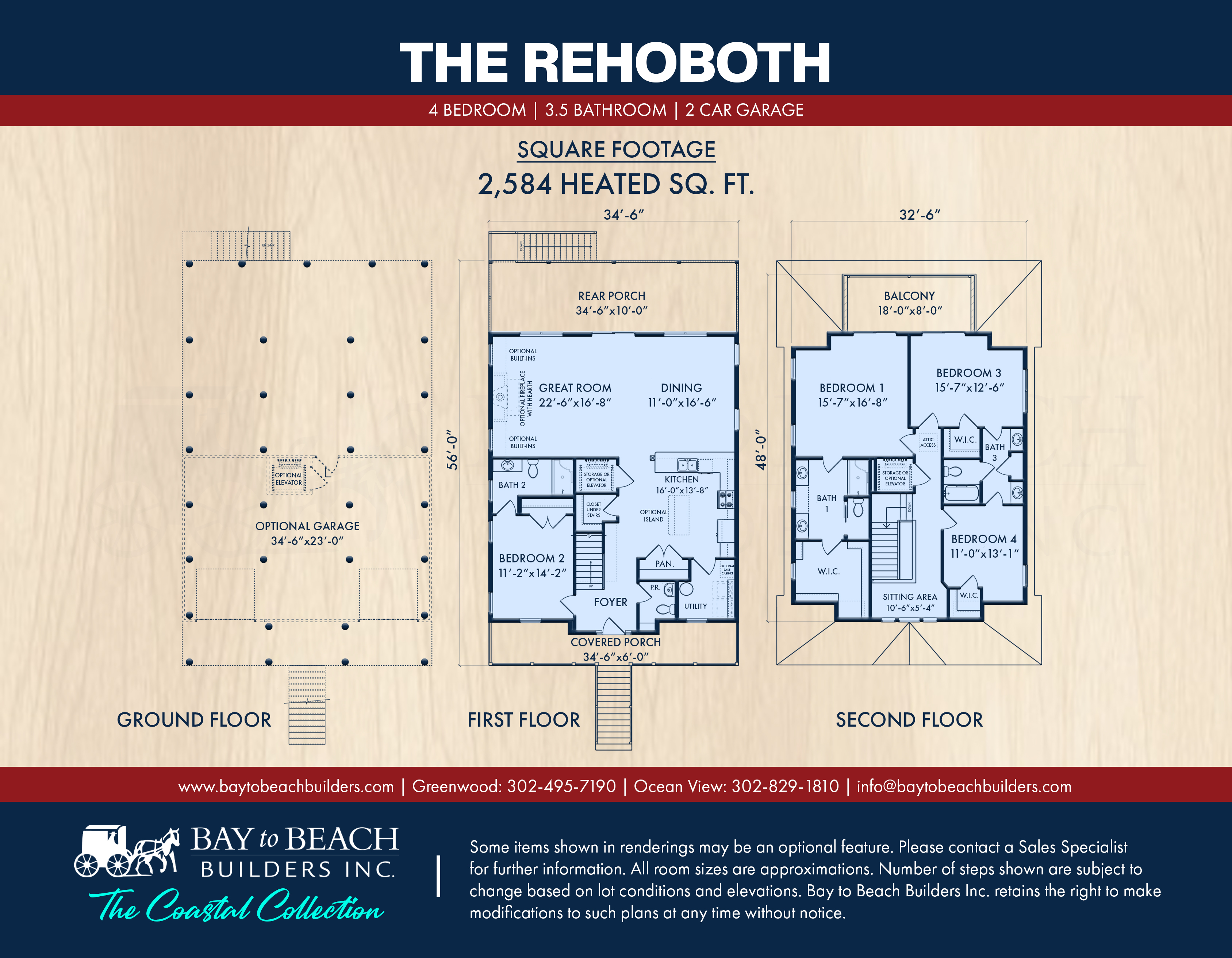 The Rehoboth is a stunning coastal home designed to embrace the beauty of waterfront and beachside living. With 2,584 heated square feet, this elevated two-story home offers four bedrooms, three and a half bathrooms, and a spacious open-concept floor plan perfect for entertaining and relaxing by the shore.